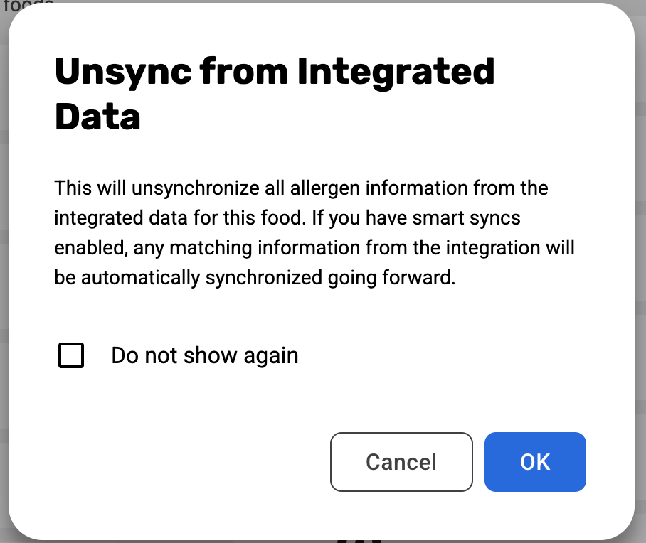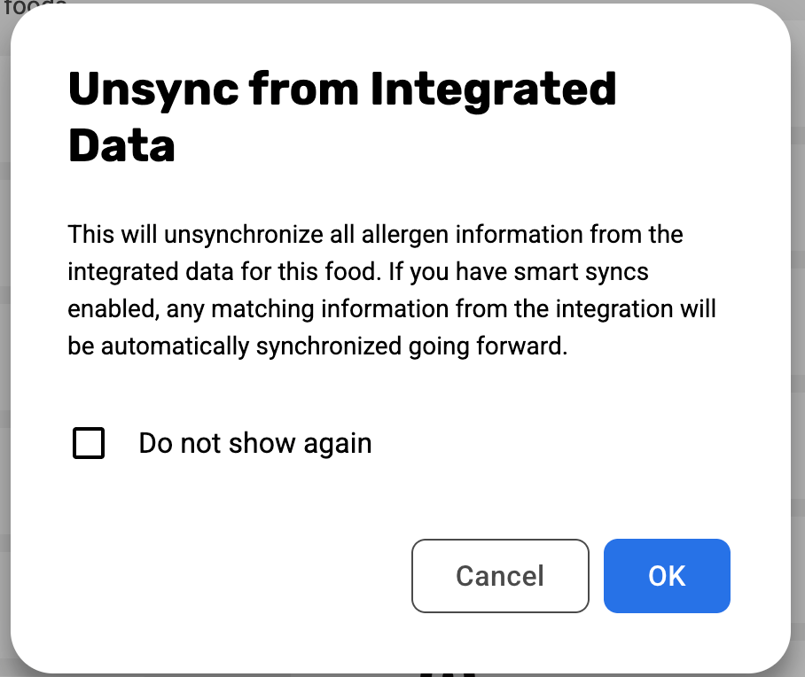 NOTE: This setting applies account-wide. Enabling it will affect allergen sync behavior for all foods that have unsynced allergen pairs matching incoming integration data.